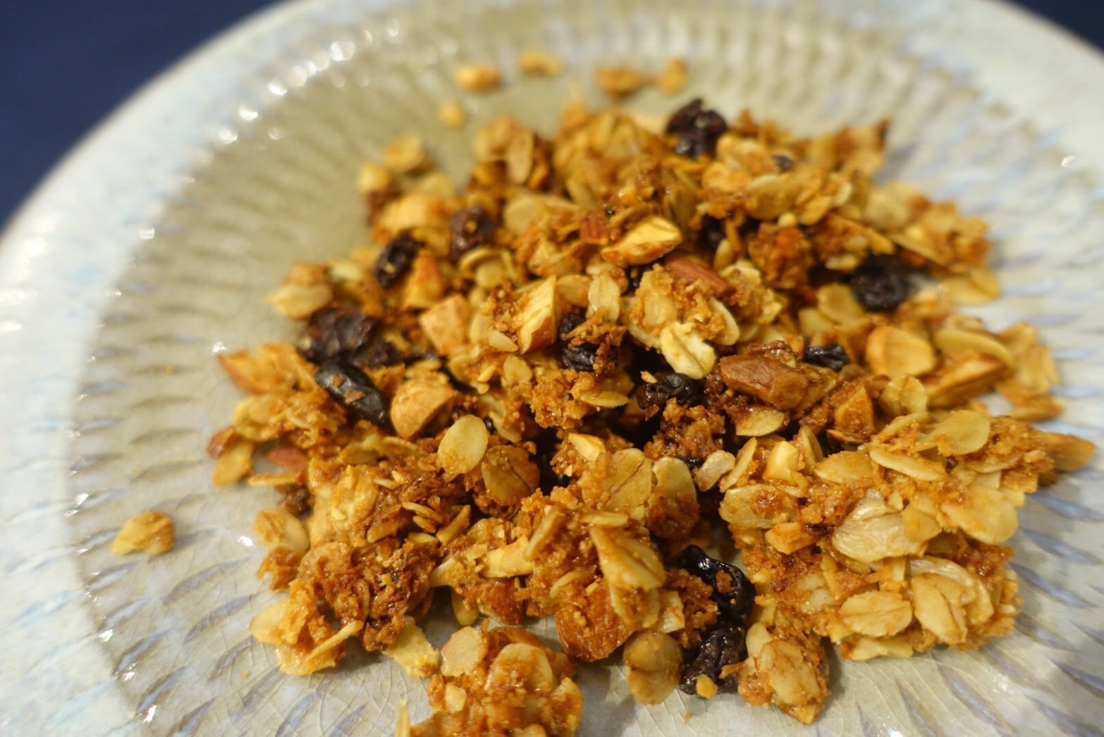 材料:オーツ麦、ココナッツファイン、アーモンド、カシューナッツ、メープルシロップ、きび糖、米油、カレンズ、甘酒、麹、天日塩